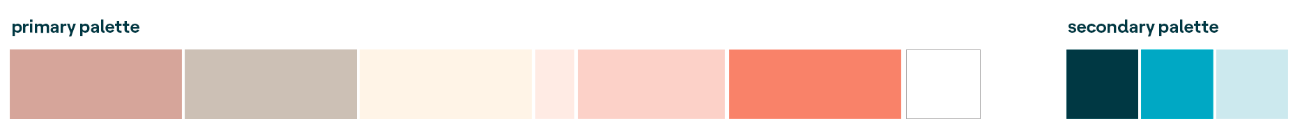 My work first focused on establishing a unifying look & feel that aligned the web tool to the launch campaign (applicable to future internal and auxillary communication elements). We established a primary color palette that features richer color tones, light beige, millennial pink and bright scarlet color to emphasize attention. Blue tones were used for copy and contrast/accent colors.
